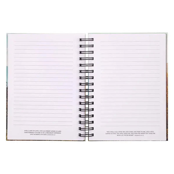 - Hardcover and Wirebound with 216 lined pages, each featuring scripture